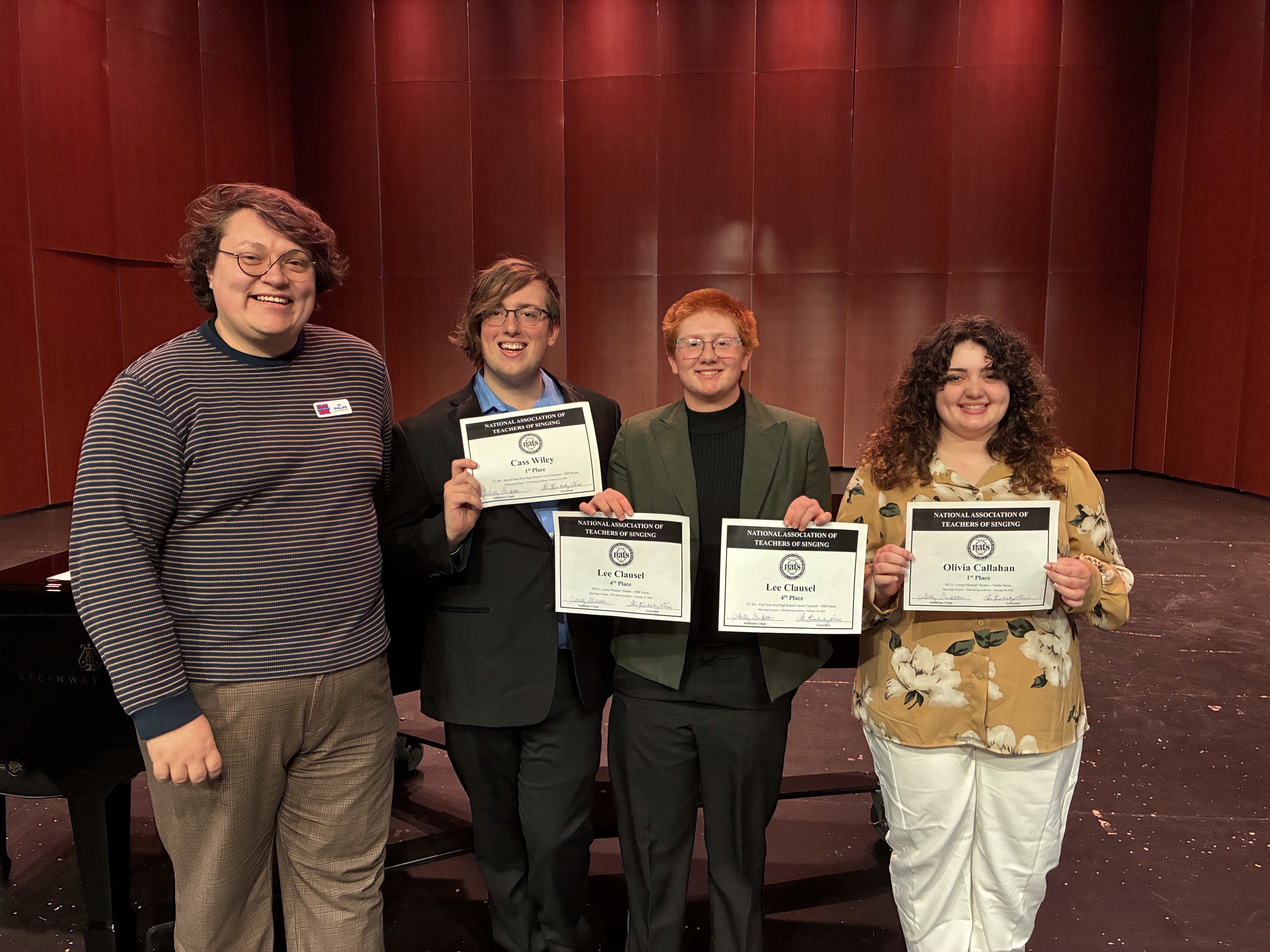 Senatobia, MS (03/07/2026) — Four Northwest Mississippi Community College students participated in the National Association of Teachers of Singing (NATS) Mississippi Chapter state auditions hosted Feb. 27-28 at Northwest's own Heindl Center for the Performing Arts.